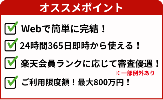 楽天会員ランクによっては審査において優遇を受けられる可能性も♪