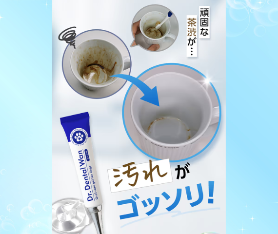 茶渋で汚れたコップをドクターデンタルワンで磨くと
