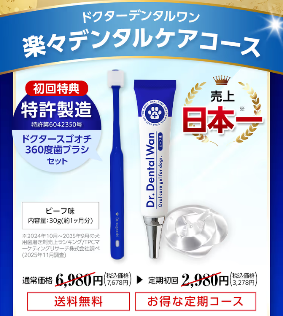 ※2024年10月~2025年9月の犬用歯磨き剤売上ランキング/TPCマーケティングリサーチ株式会社調べ(2025年11月調査)