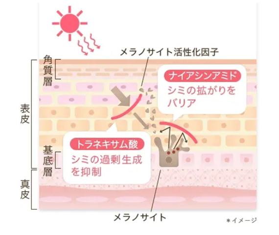 ナイアシンアミドが出来てしまったメラニンの広がりを抑えて